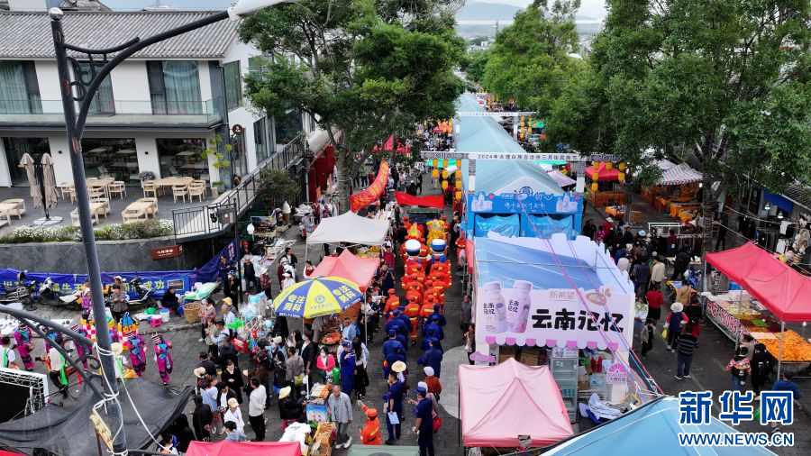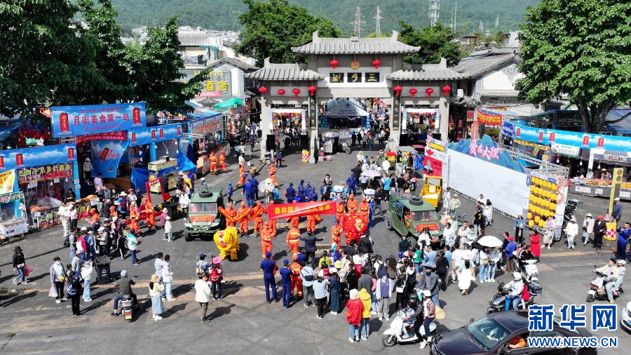 指戰員在三月街開展防火宣傳(5月2日攝)。新華網發(陳勝瑤 攝)