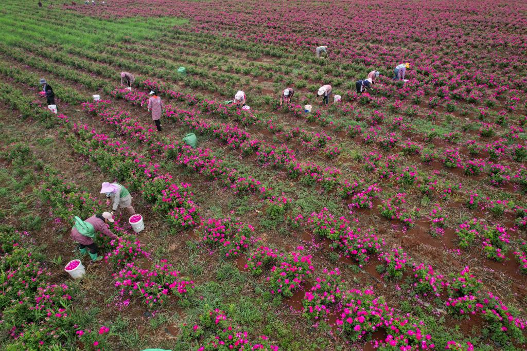 云南曲靖的玫瑰花種植基地。新華社發(楊俊鵬攝)
