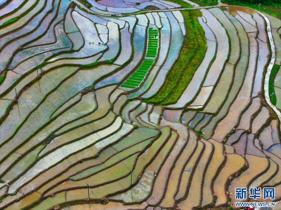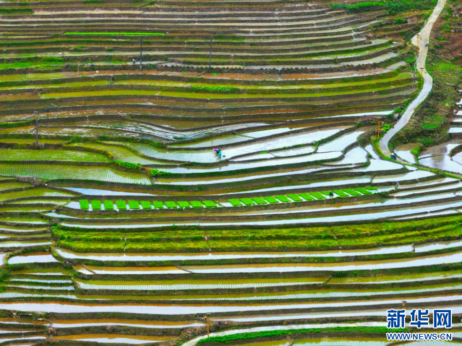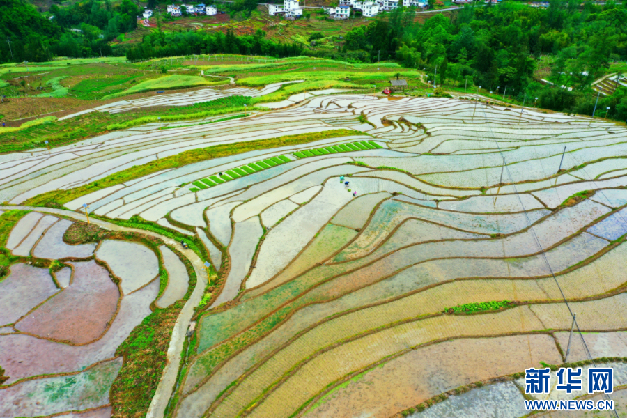 忙碌的農耕場景仿佛一幅畫(5月5日攝)。新華網發(綏江縣融媒體中心 供圖)