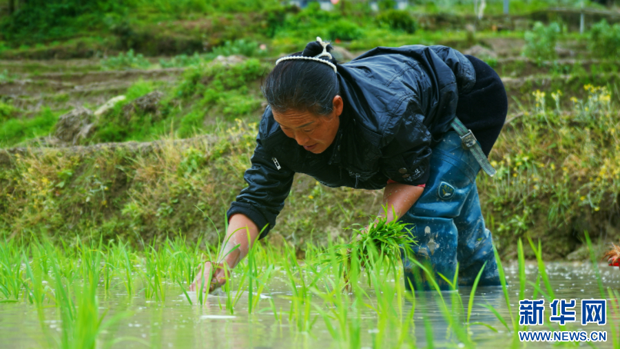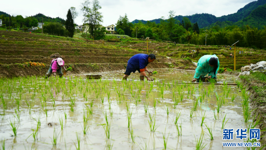 農民們搶抓農時忙插秧(5月5日攝)。新華網發(綏江縣融媒體中心 供圖)