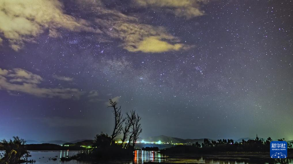 近年來,滇池保護治理工作持續推進,云南晉寧南滇池國家濕地公園的生態環境顯著改善,夜幕降臨,水面如鏡,映照星河,通過攝影師的鏡頭,浩瀚無垠的璀璨星空呈現在眼前。