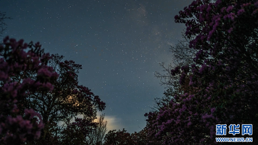 大理馬耳山,杜鵑花與繁星“同框”(視頻截圖)。