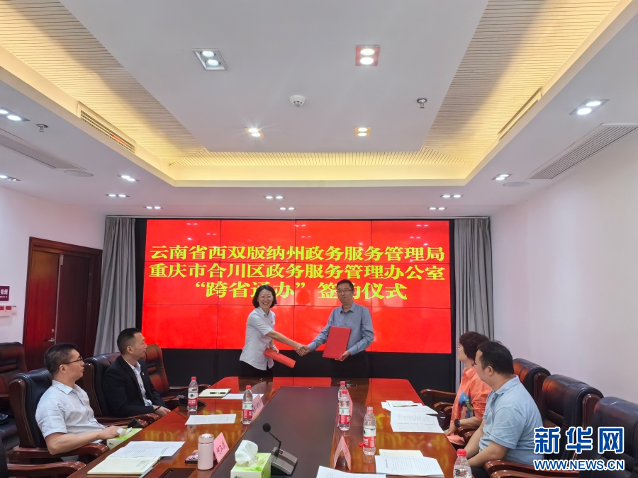 西雙版納州政務服務管理局與合川區政務服務管理辦簽訂“跨省通辦”框架協議(5月9日攝)。新華網發(西雙版納州政務服務管理局 供圖)
