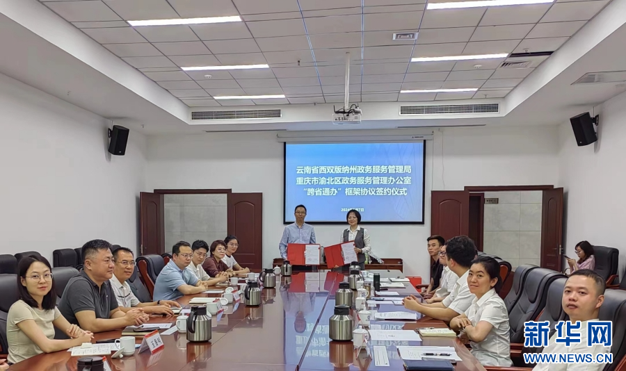 西雙版納州政務服務管理局與渝北區政務服務管理辦簽訂“跨省通辦”框架協議(5月7日攝)。新華網發(西雙版納州政務服務管理局 供圖)