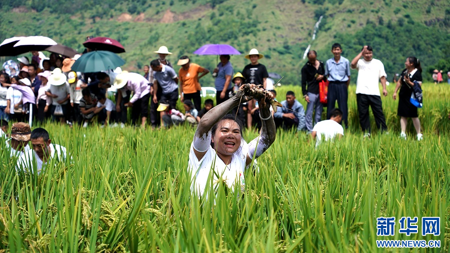 游客體驗捉稻花魚(資料圖)。新華網發(龍陵縣融媒體中心 供圖)