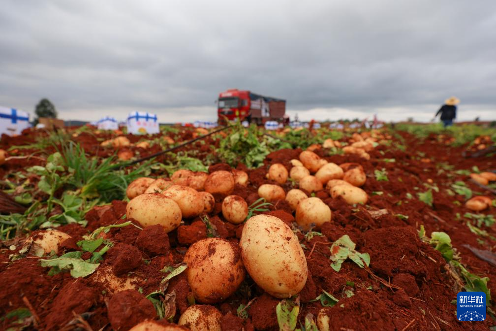 連日來,在云南省曲靖市陸良縣小百戶鎮普樂村委會高效農業示范基地,農民們開始適時收獲馬鈴薯,田間地頭一派豐收景象。