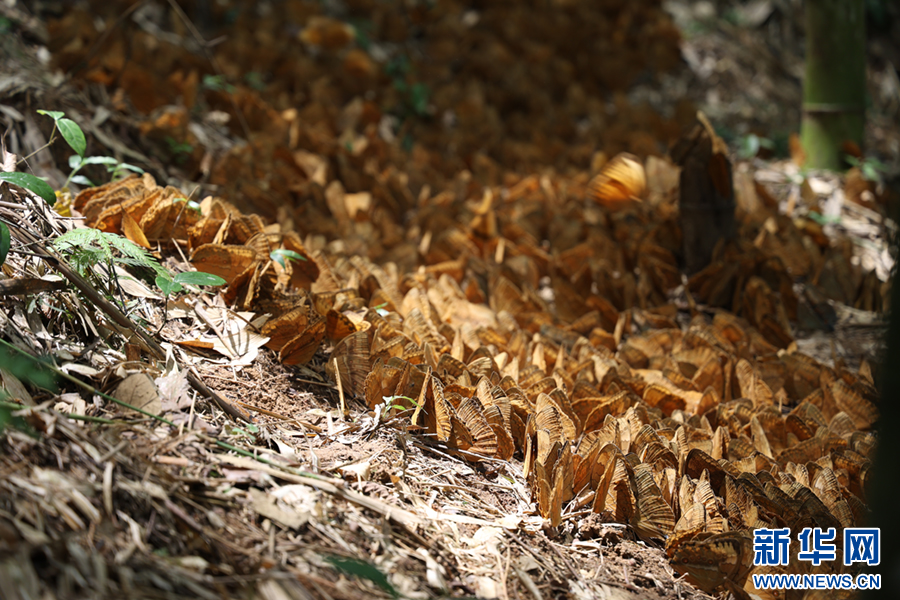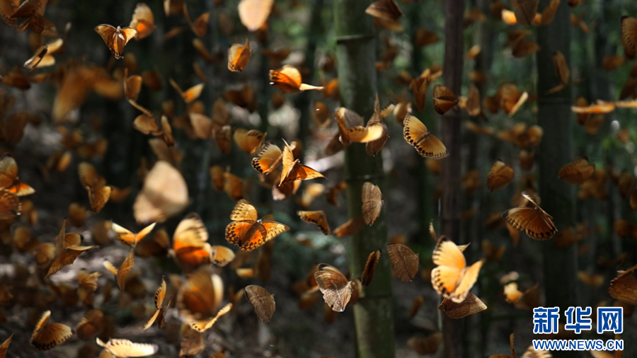 每年5月下旬開始,數以億計的箭環蝶在中國·紅河蝴蝶谷呈爆發狀破繭成蝶,形成罕見的蝴蝶集中羽化生物活動景觀。(金平縣融媒體中心)