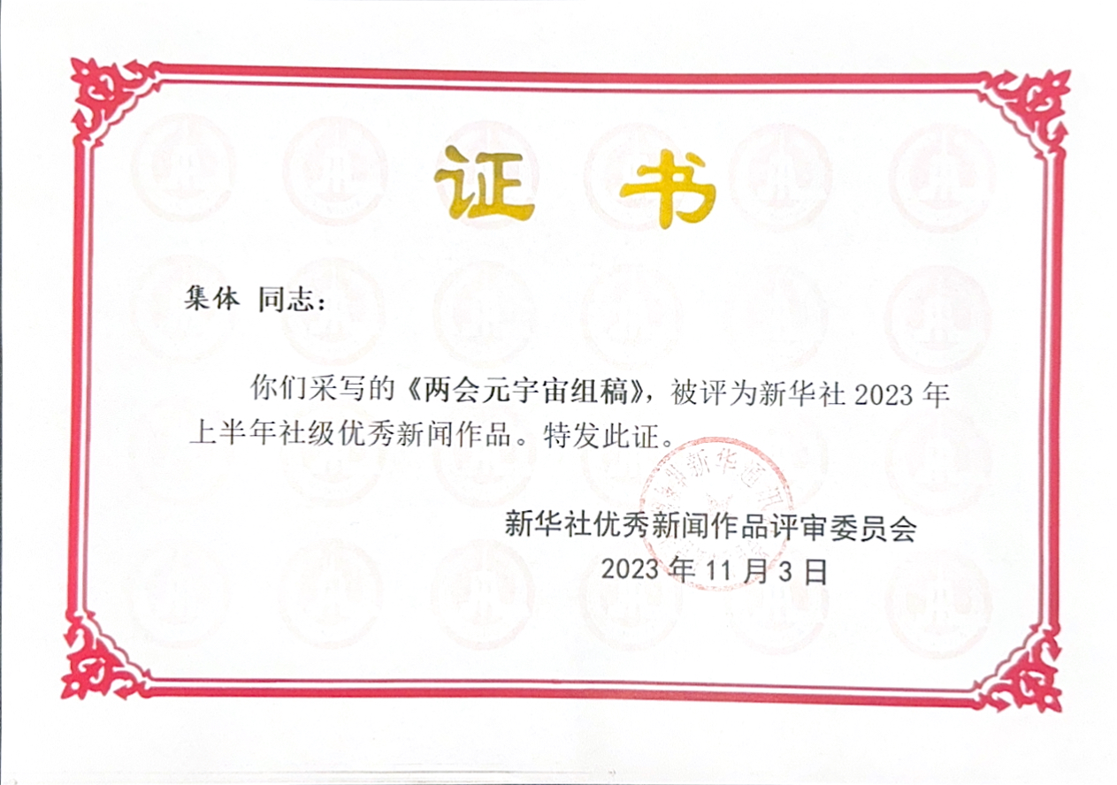 新華社云南分社2023年2月28日播發的《元宇宙·職業新體驗丨郁伍林代表:帶你走進“未來老姆登”》擬按自薦、他薦方式參評第三十四屆中國新聞獎。該作品榮獲新華社2023年上半年社級優秀新聞作品。