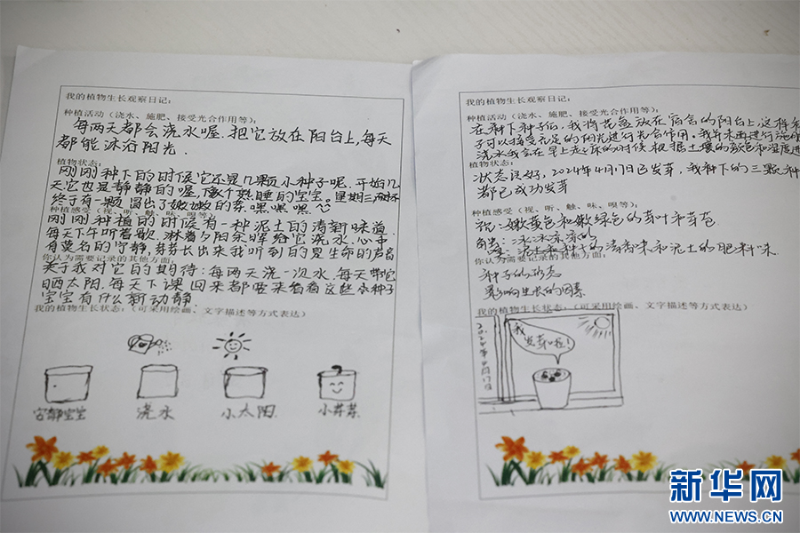 學生記錄下植物生長情況(5月23日攝)。新華網發(劉云 攝)