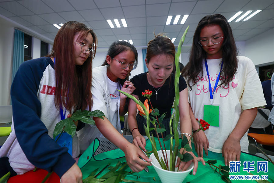 學生們正在插花(5月23日攝)。新華網發(劉云 攝)