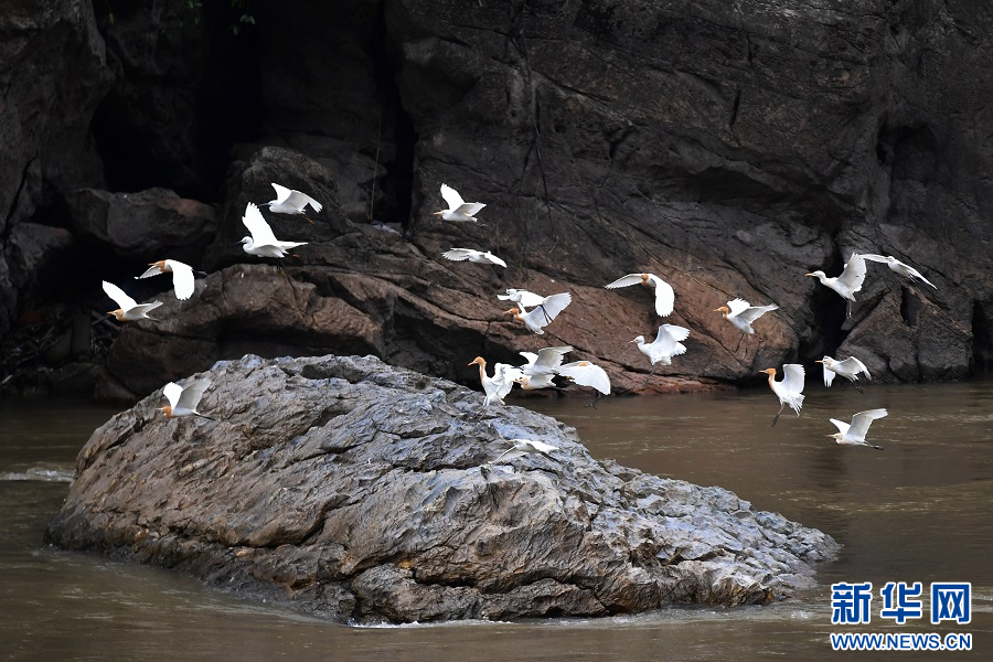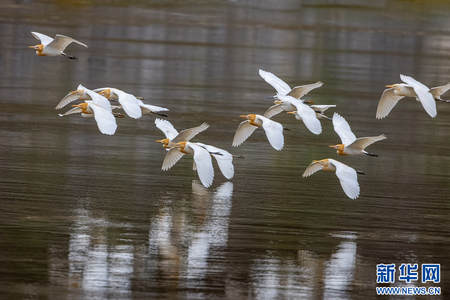 牛背鷺飛翔畫面(5月11日攝)。新華網發(和兆南 攝)