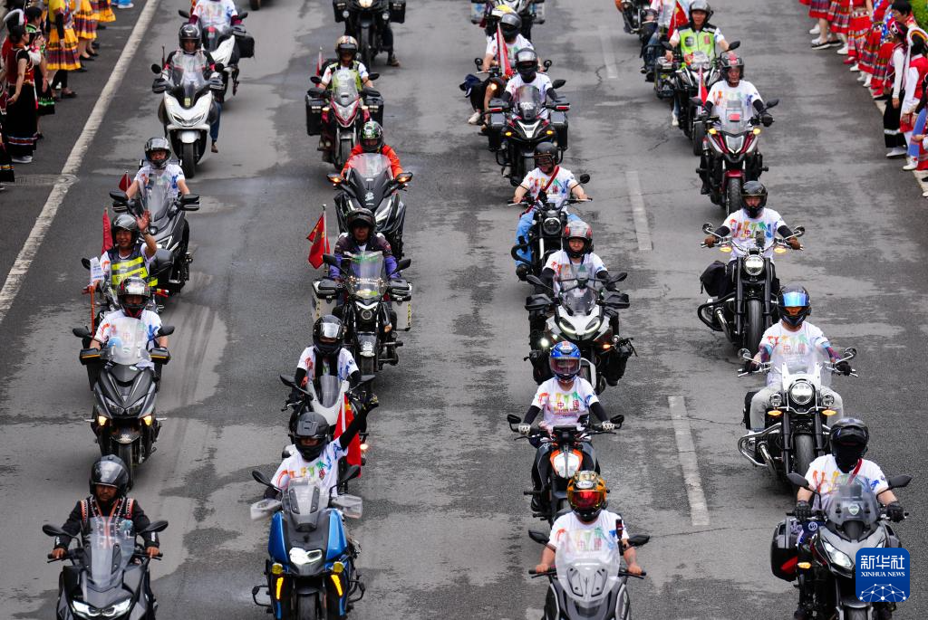 5月25日,車隊在瀘水市怒江大道上巡游。新華社記者 王靜頤 攝