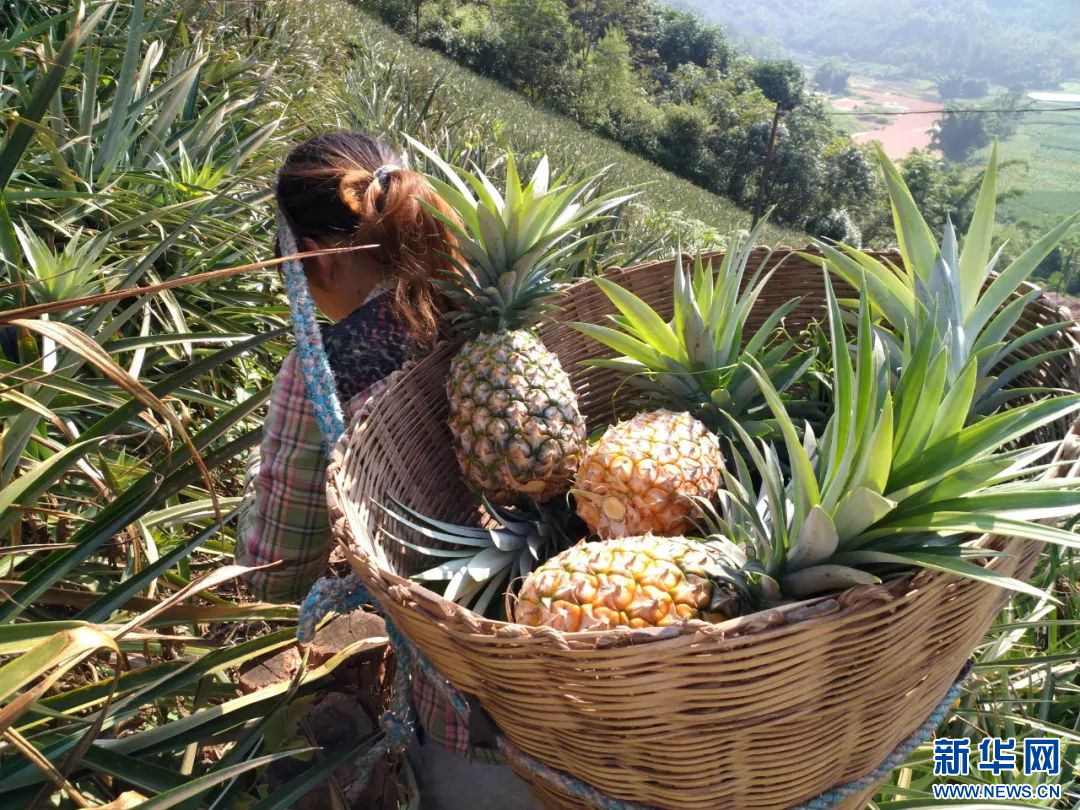 村民采摘菠蘿(5月29日攝)。新華網發(景谷縣融媒體中心供圖)
