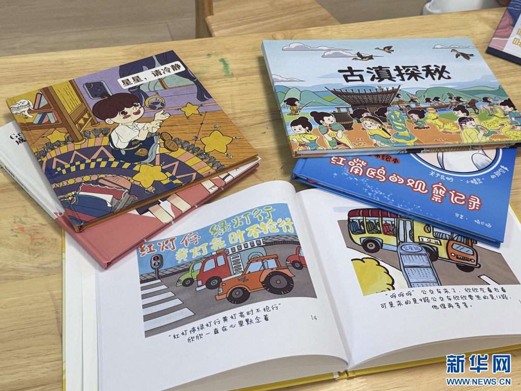 王開瑩牽頭研究的部分繪本(5月29日攝)。新華網發(柴靜 攝)