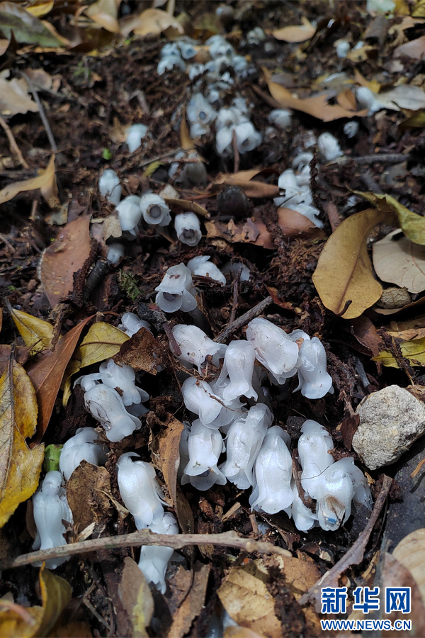 保護區內發現的水晶蘭(5月24日攝)。新華網發(鳳慶縣融媒體中心供圖)