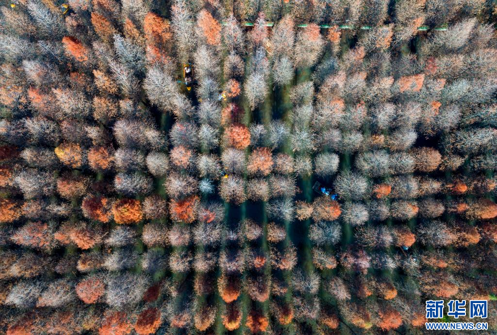 2023年1月5日,游客在昆明市海洪濕地公園里劃船(無人機照片)。新華社記者 陳欣波 攝