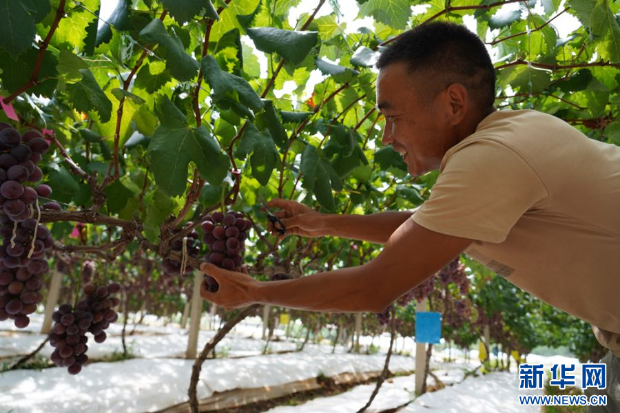 種植戶正在采摘成熟的葡萄(6月3日攝)。新華網發(楊金蕾 攝)