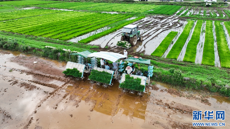 農戶們忙著插秧(6月1日攝)。新華網發(沙相 攝)