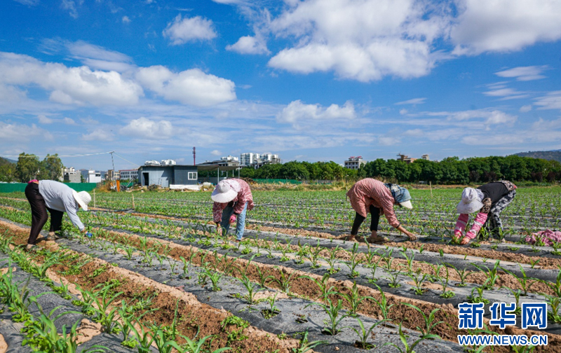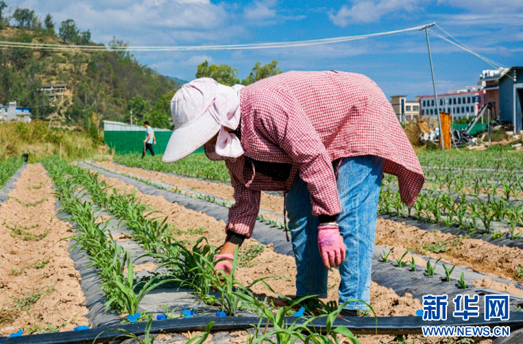 忙著給玉米除草的村民(6月4日攝)。新華網發(大姚縣融媒體中心供圖)