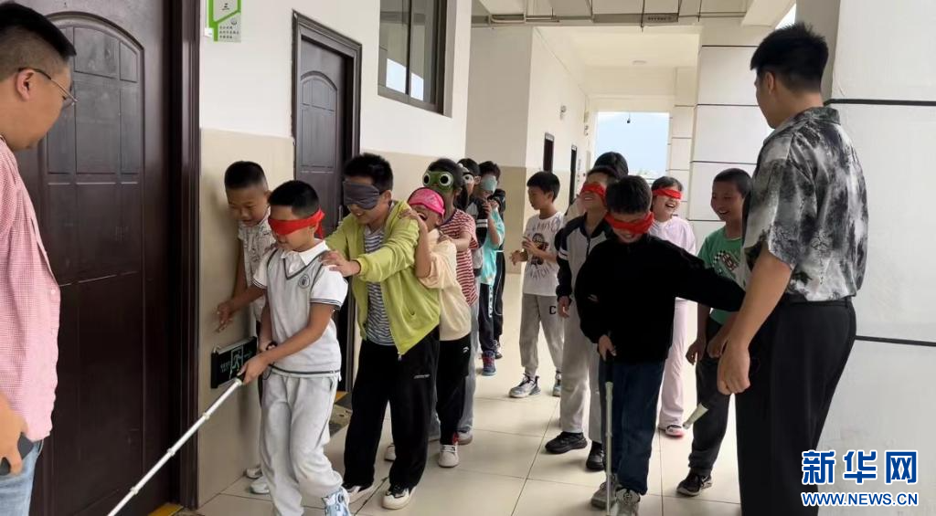 孩子們在助盲模擬實戰勞動課中體驗。受訪者供圖