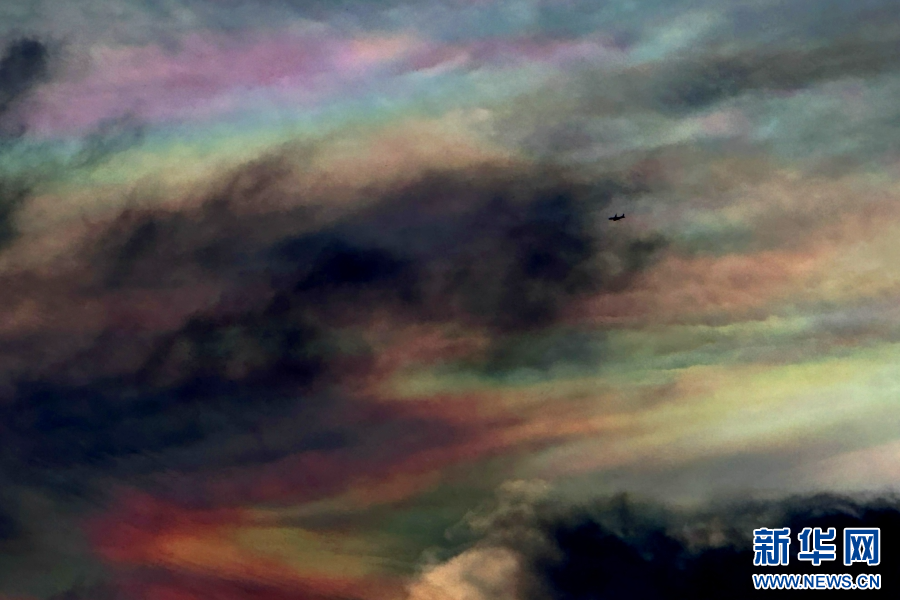 飛機從“七彩祥云”區域飛過(6月19日攝)。新華網發(田佳婕 攝)