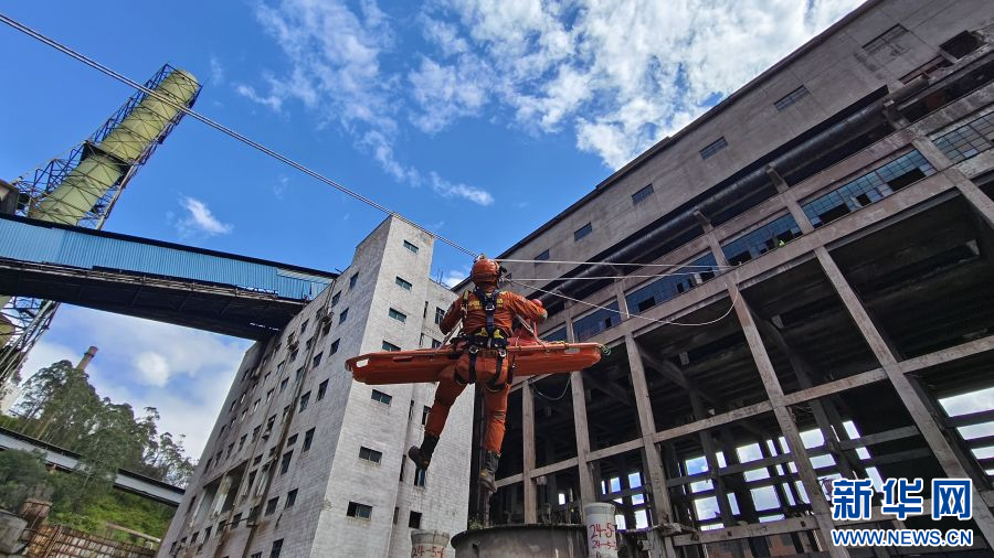斜向救援訓練(6月18日攝)。新華網發(胡童浩 攝)
