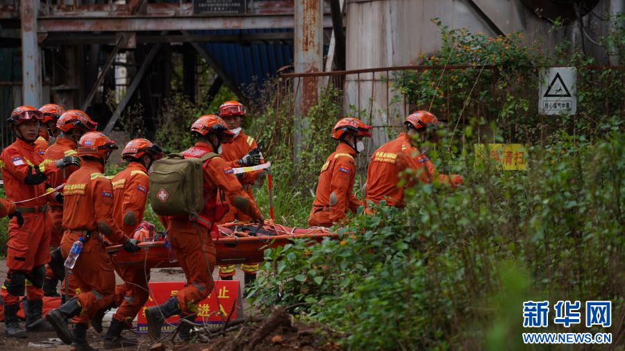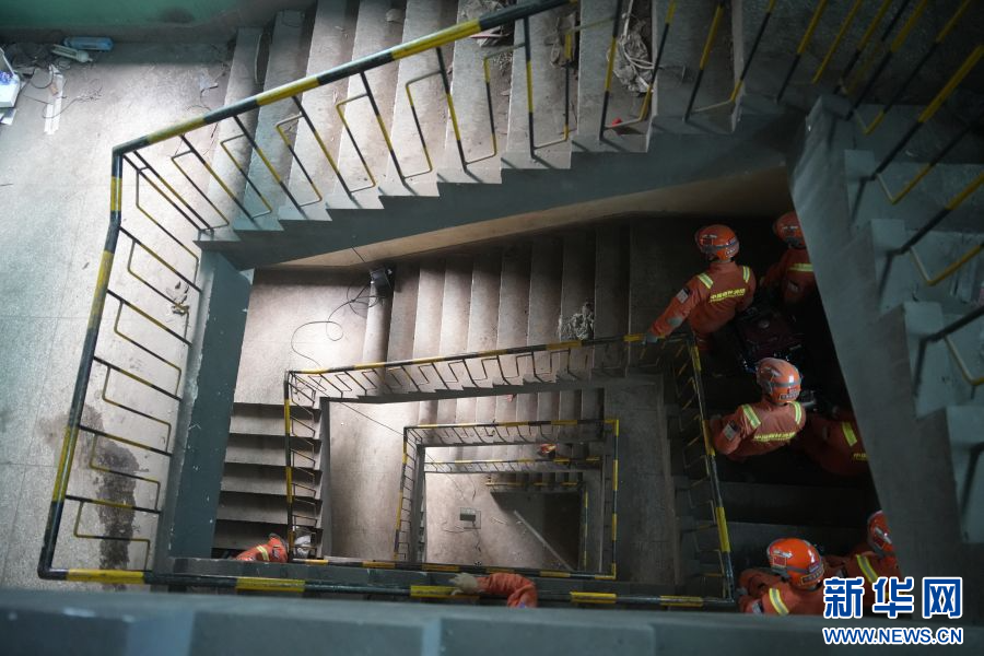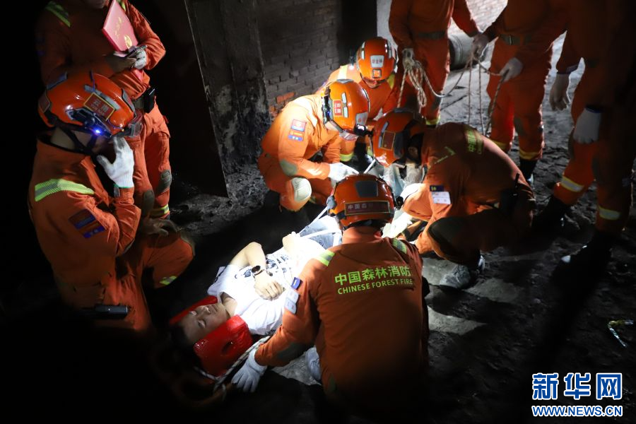 消防救援人員轉移受困假人(6月18日攝)。新華網發(郭俊 攝)