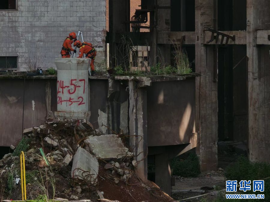 指戰員進行向下破拆(6月18日攝)。新華網發(張玉超 攝)