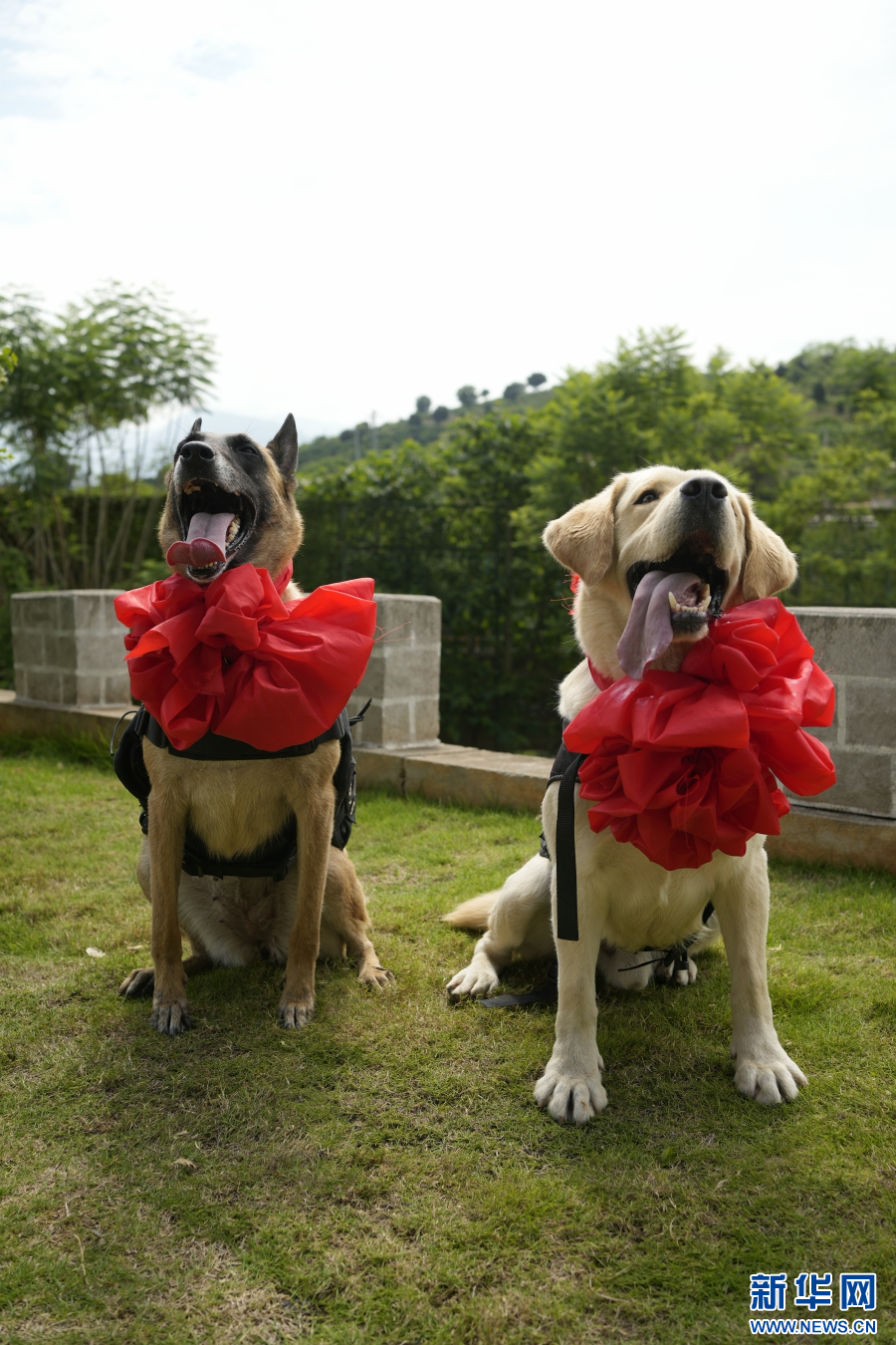 圖為警犬“鷹空”(左)與警犬“云驍”(資料圖)。新華網發(保山邊境管理支隊供圖)