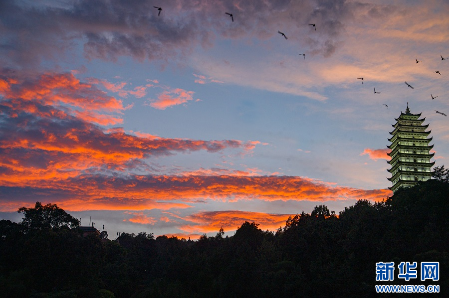 美出天際!航拍云南保山浪漫晚霞美如畫_新華網