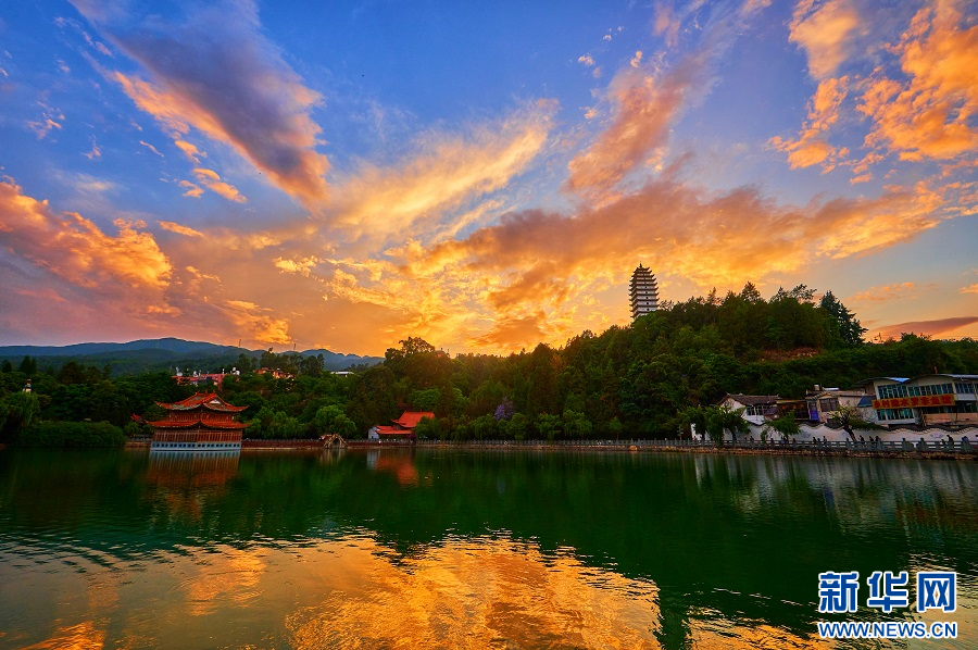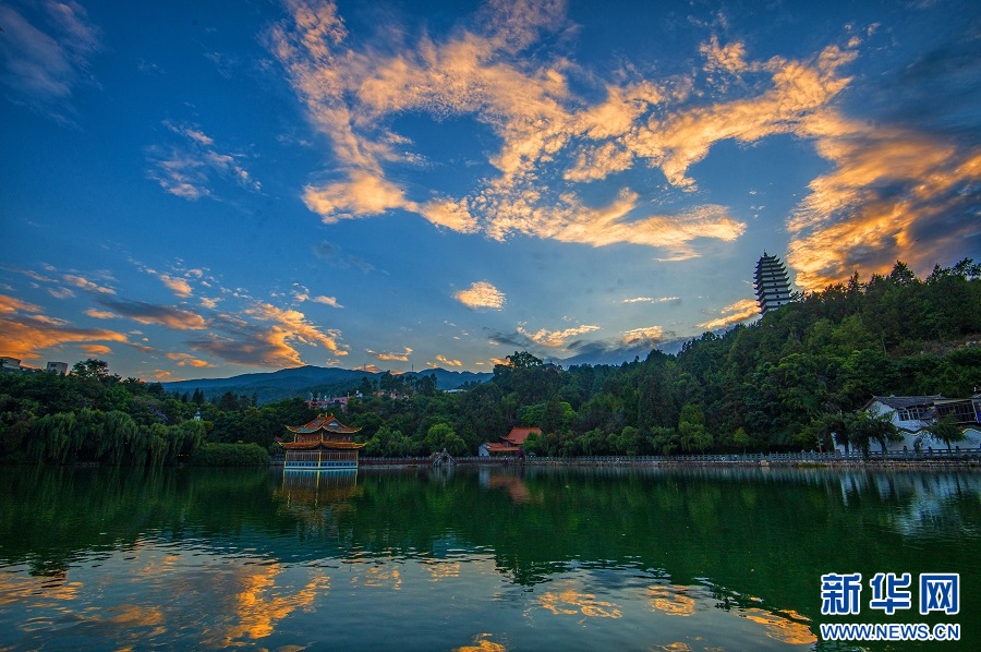 易羅池公園美麗的晚霞(6月10日攝)。新華網發(郭康 攝)