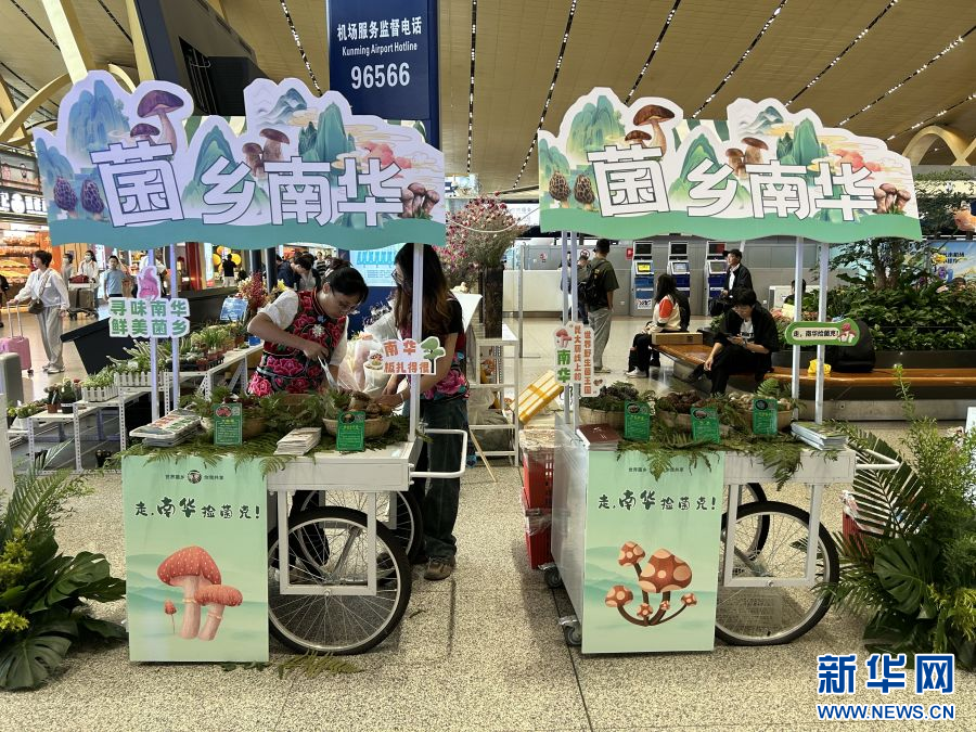 連日來,隨著雨水增多,云南省楚雄彝族自治州南華縣山林里的野生菌漸漸冒頭,各類可食用野生菌陸續進入市場銷售。6月28日,南華縣在昆明長水國際機場開展“走,南華撿菌克!”南華縣城市形象主題推介活動,種類豐富的南華土特產和熱情好客的彝家兒女齊聚于此,吸引眾多旅客駐足。
