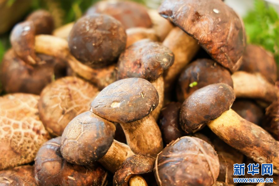 在昆明長水國際機場展示的野生菌(6月28日攝)。新華網發(李浩 攝)