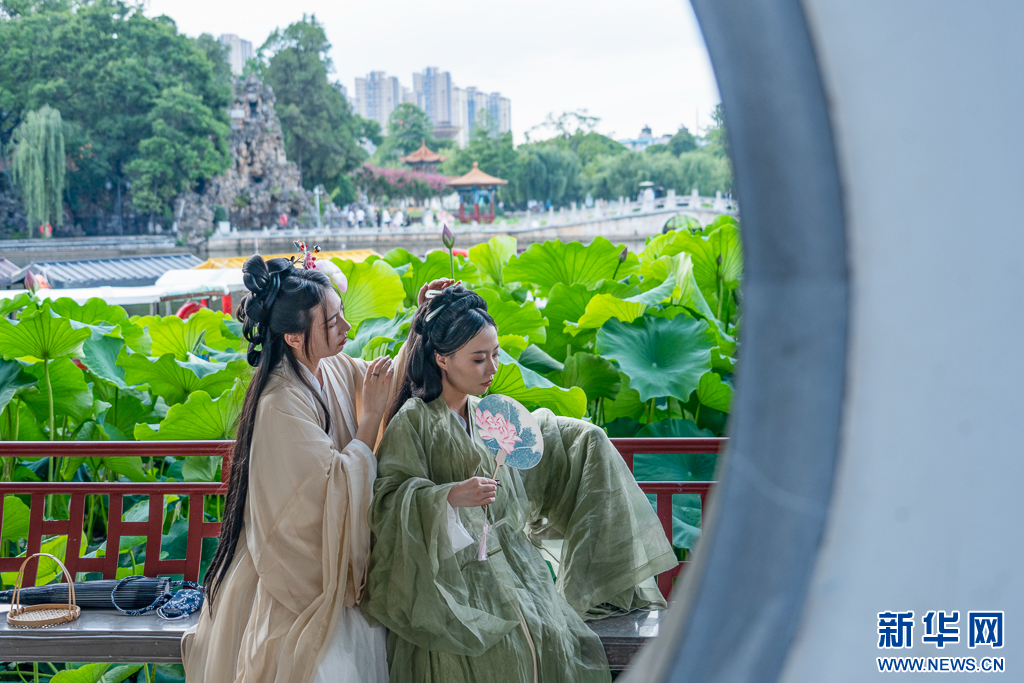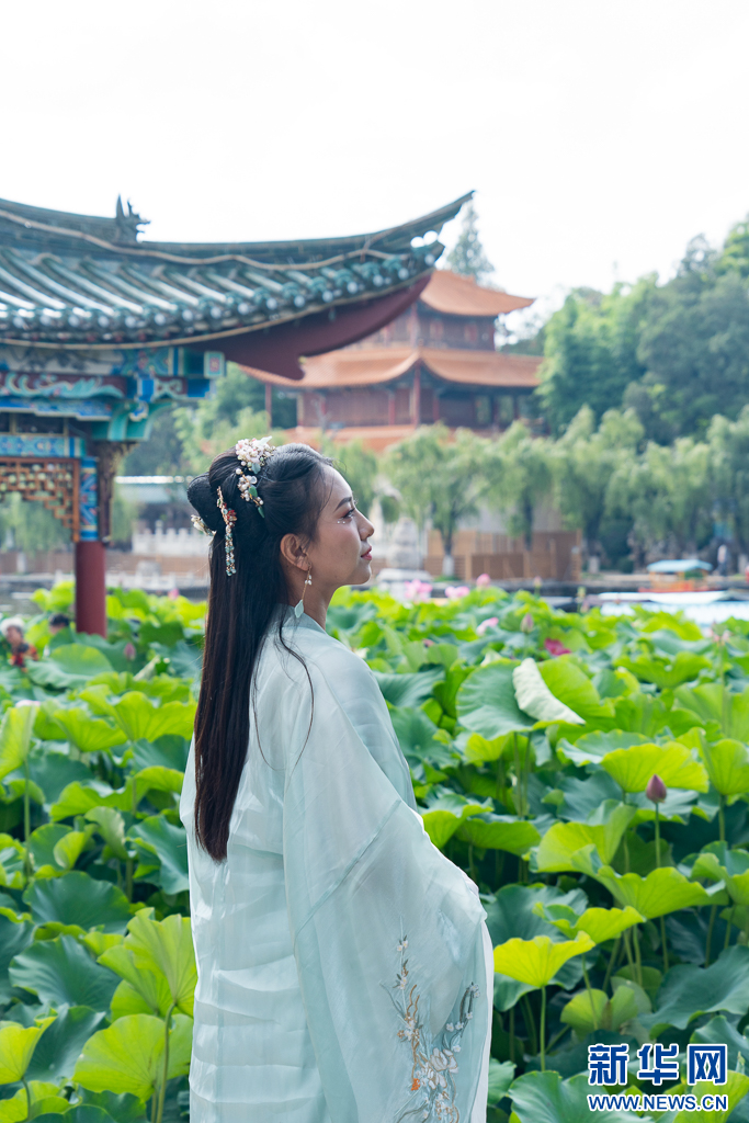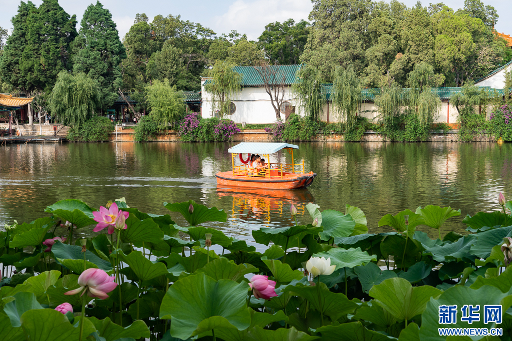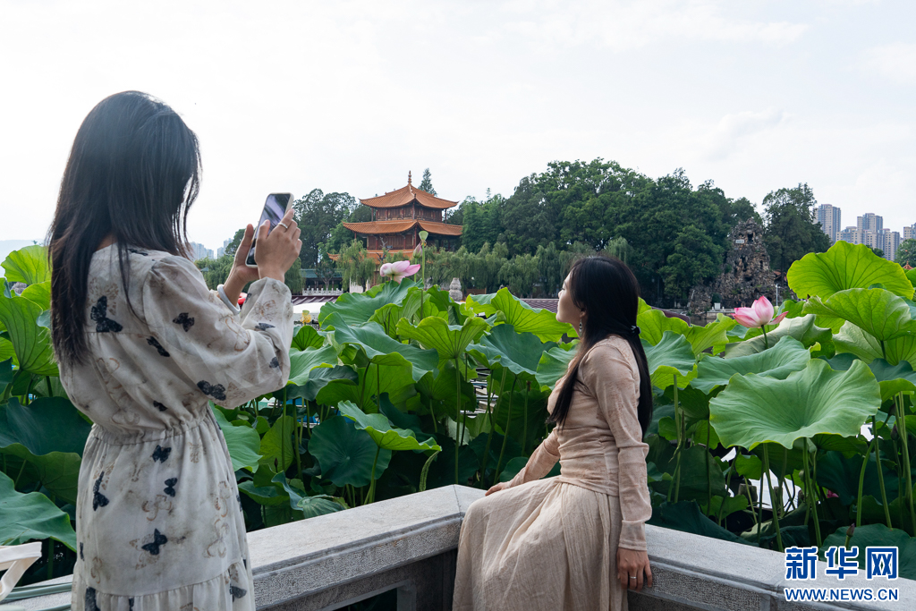 近日,云南省昆明市大觀公園又迎來了賞荷季,園內荷花千姿百態,競相綻放,吸引了不少游客前來觀賞游玩。嬌艷的荷花與園內其他建筑、游客相映成趣,構成一幅幅美麗的畫卷。(完)