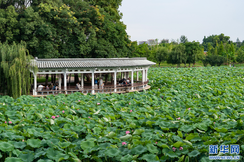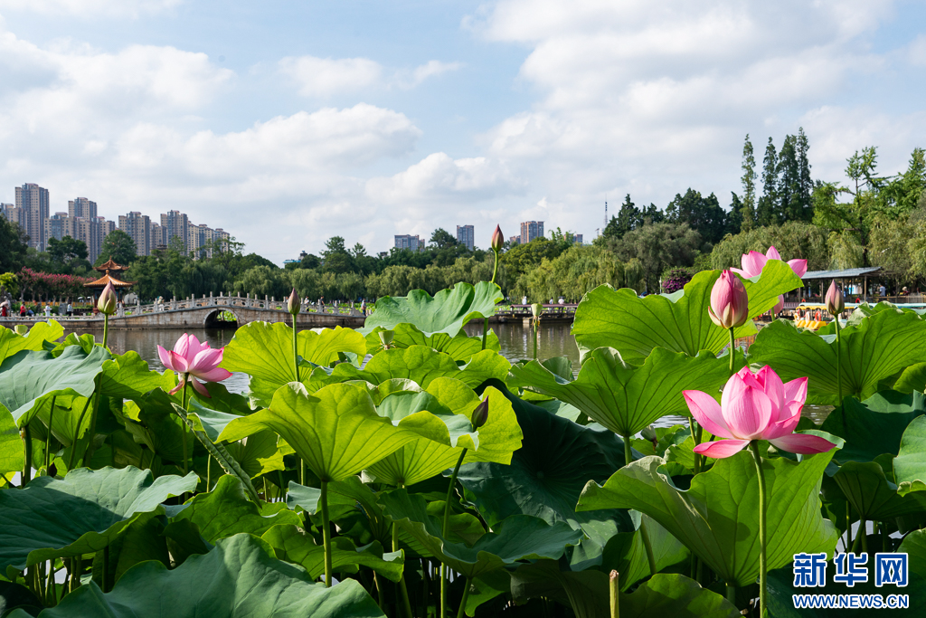 大觀公園內盛開的荷花(6月15日攝)。新華網發(鄭益 攝)