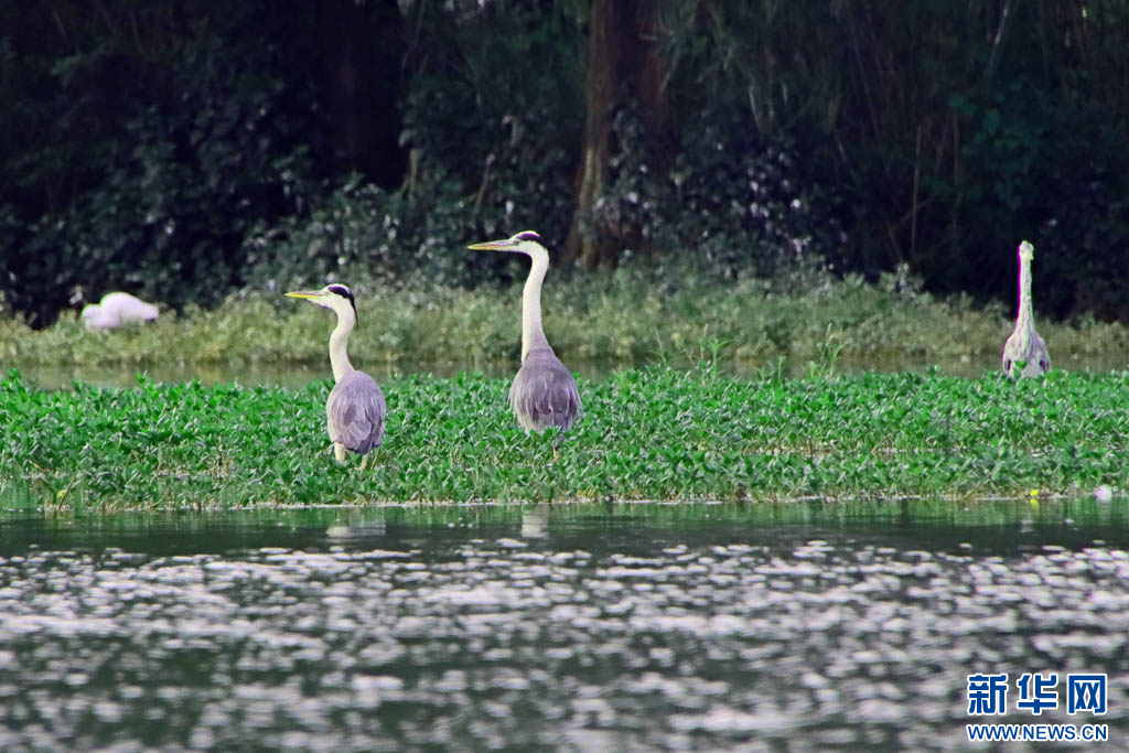 湖泉生態園里的蒼鷺和夜鶯(6月28日攝)。新華網發(趙樹龍 攝)