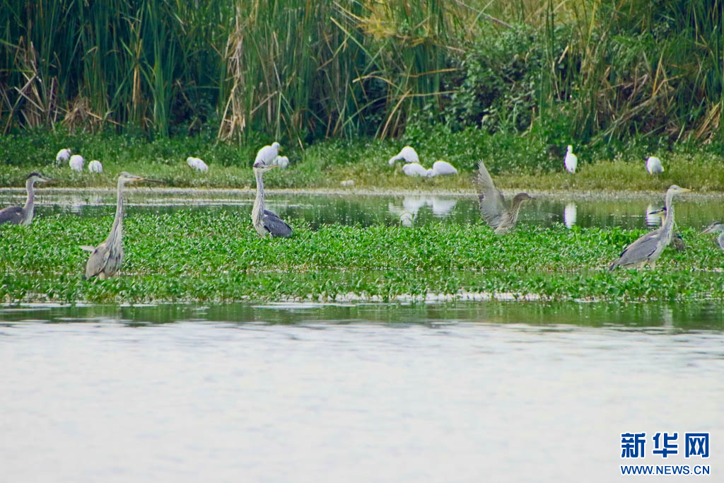 湖泉生態園里的蒼鷺和白鷺(6月28日攝)。新華網發(趙樹龍 攝)