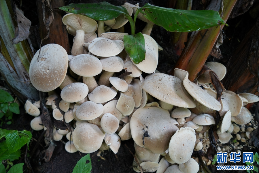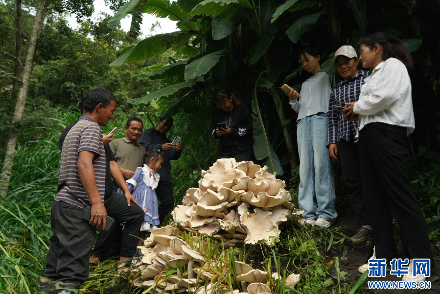 巨型野生菌吸引了當地群眾前來圍觀(7月17日攝)。新華網發(劉子安 攝)