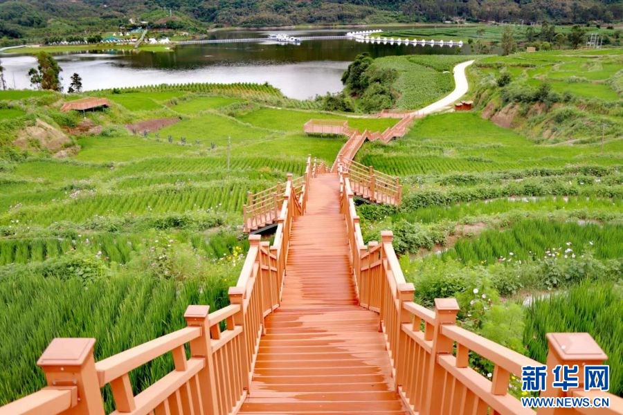 和平鎮大廠村梯田水稻長勢喜人(攝于7月10日)。新華網發(楊曉丹 攝)