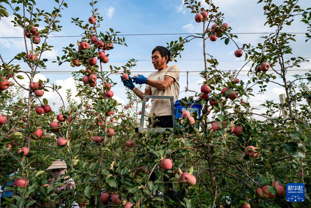 果農在云南省昭通市一處蘋果基地采摘蘋果(2023年10月30日攝)。新華社記者 陳欣波 攝