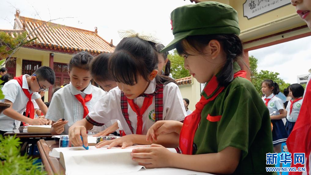 新華網昆明7月23日電(記者 浦超)近日,云南省廣南縣城區一所小學組織學生到柯仲平紀念館開展“誦讀紅色詩韻,賡續革命血脈”詩歌朗誦讀書會,孩子們深情朗誦《我們是新生的力量 》《鐵打的英雄 》《不到黃河心不甘》等柯仲平創作的經典詩作,表演了《狂飆詩人——柯仲平》情景劇。這是進入暑期以來柯仲平紀念館紅色旅游研學的一個縮影。
