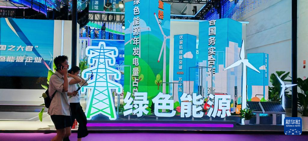 7月23日,兩位參展客商在綠色能源館參觀。新華社記者 浦超 攝