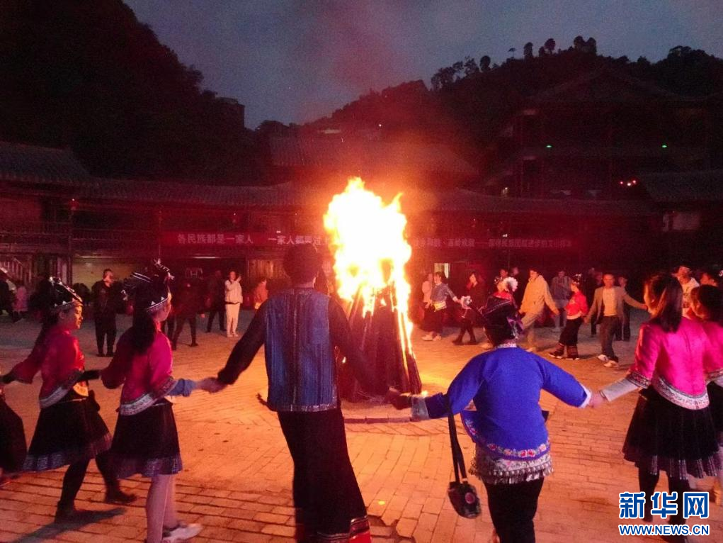 游客和當地群眾圍著篝火跳舞。受訪者供圖