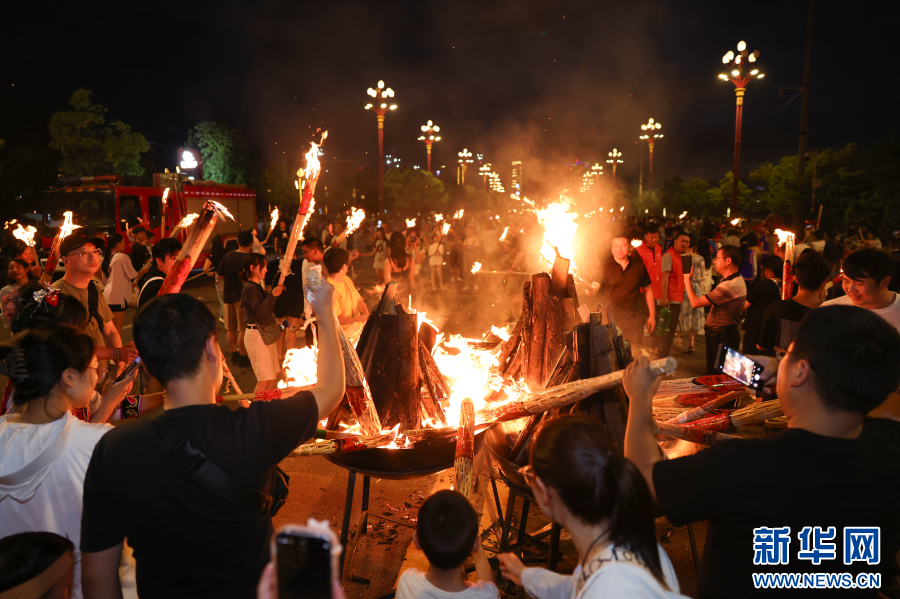 點火把(7月27日攝)。新華網發(楚雄州融媒體中心 高建波 攝)