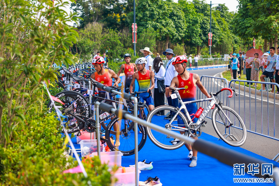 7月24日,云南省第二屆青少年(學生)運動會鐵人三項項目中,比賽選手結束騎行準備進行長跑。新華網發(陶家淇 攝)