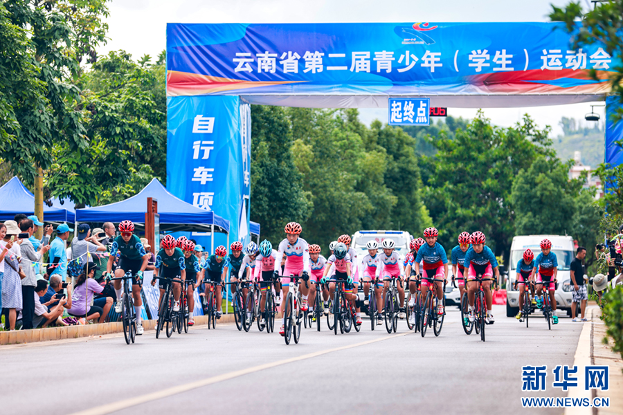 7月19日上午,云南省第二屆青少年(學生)運動會公路自行車賽在紅河州開遠市開賽。新華網發(陶家淇 攝)