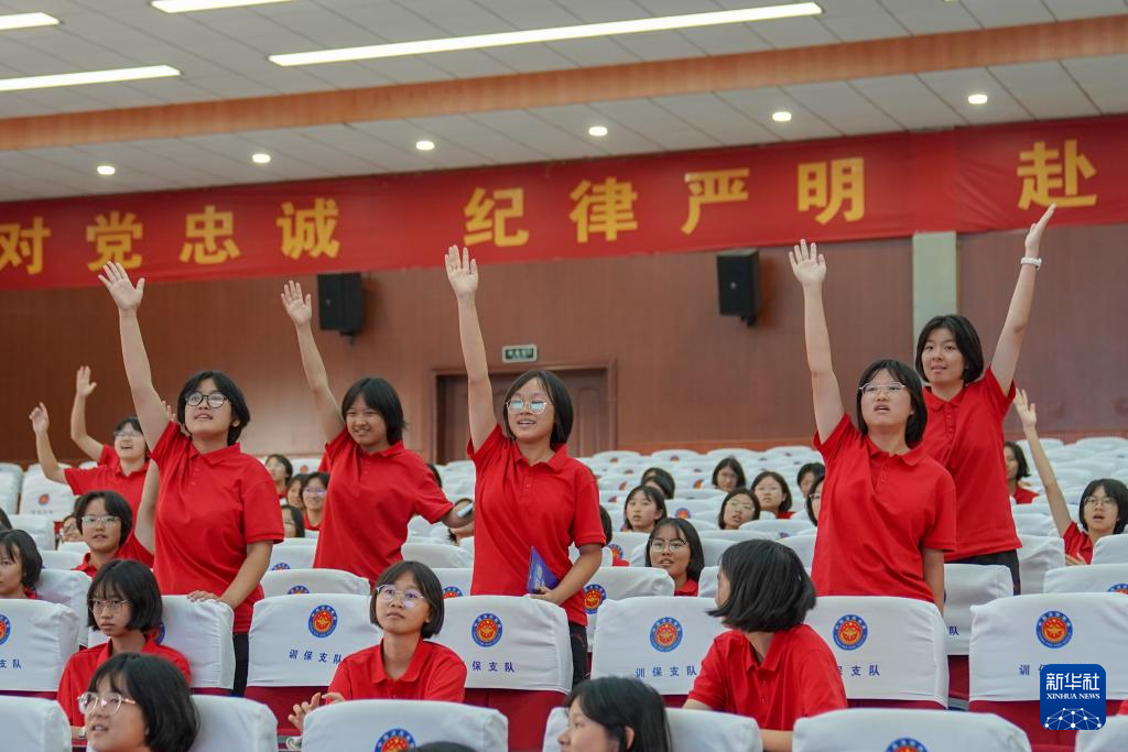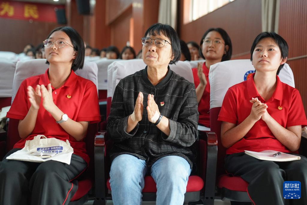 8月2日,張桂梅同學生一起聆聽反詐宣傳講座。新華社記者 彭奕凱 攝