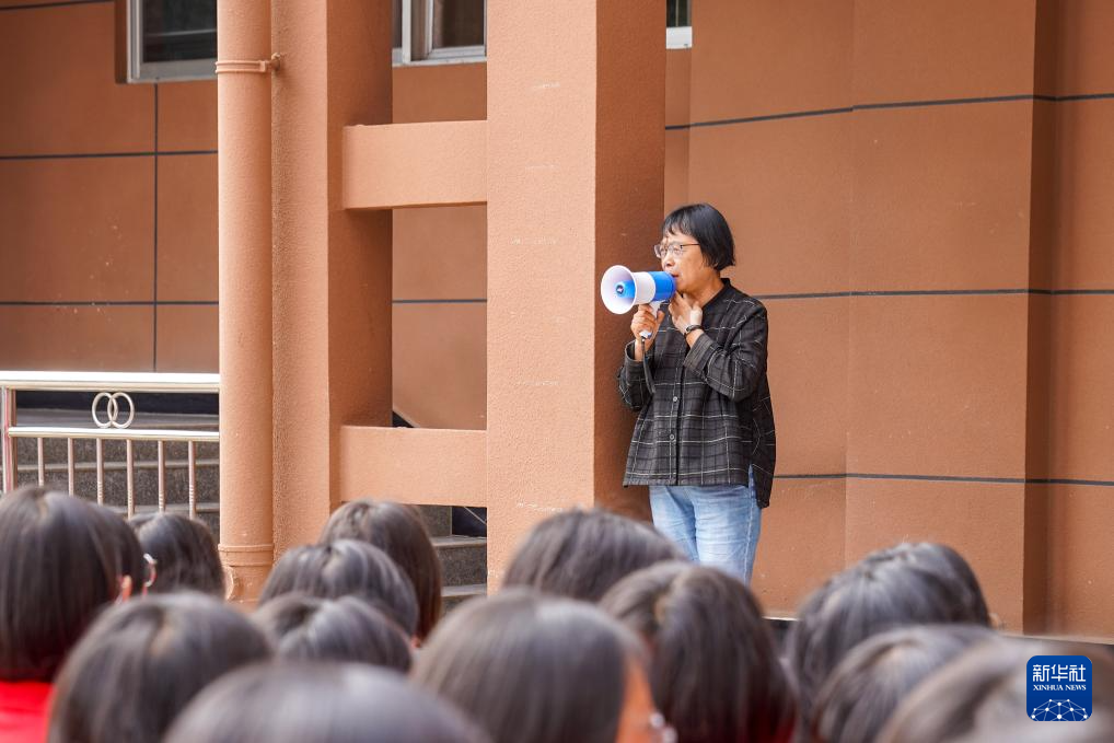 8月2日,華坪女高校長張桂梅在講座開始前呼喚學生集合。新華社記者 彭奕凱 攝