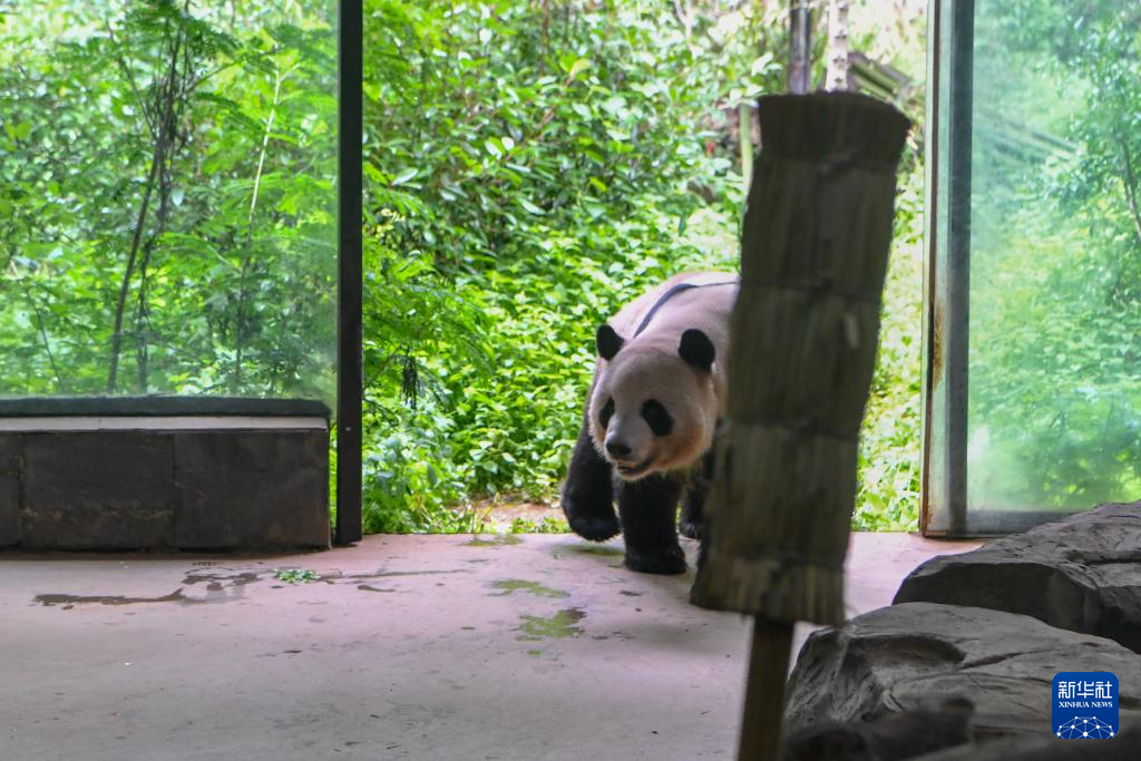 8月2日,大熊貓“珍多”進入活動內場。新華社記者 彭奕凱 攝