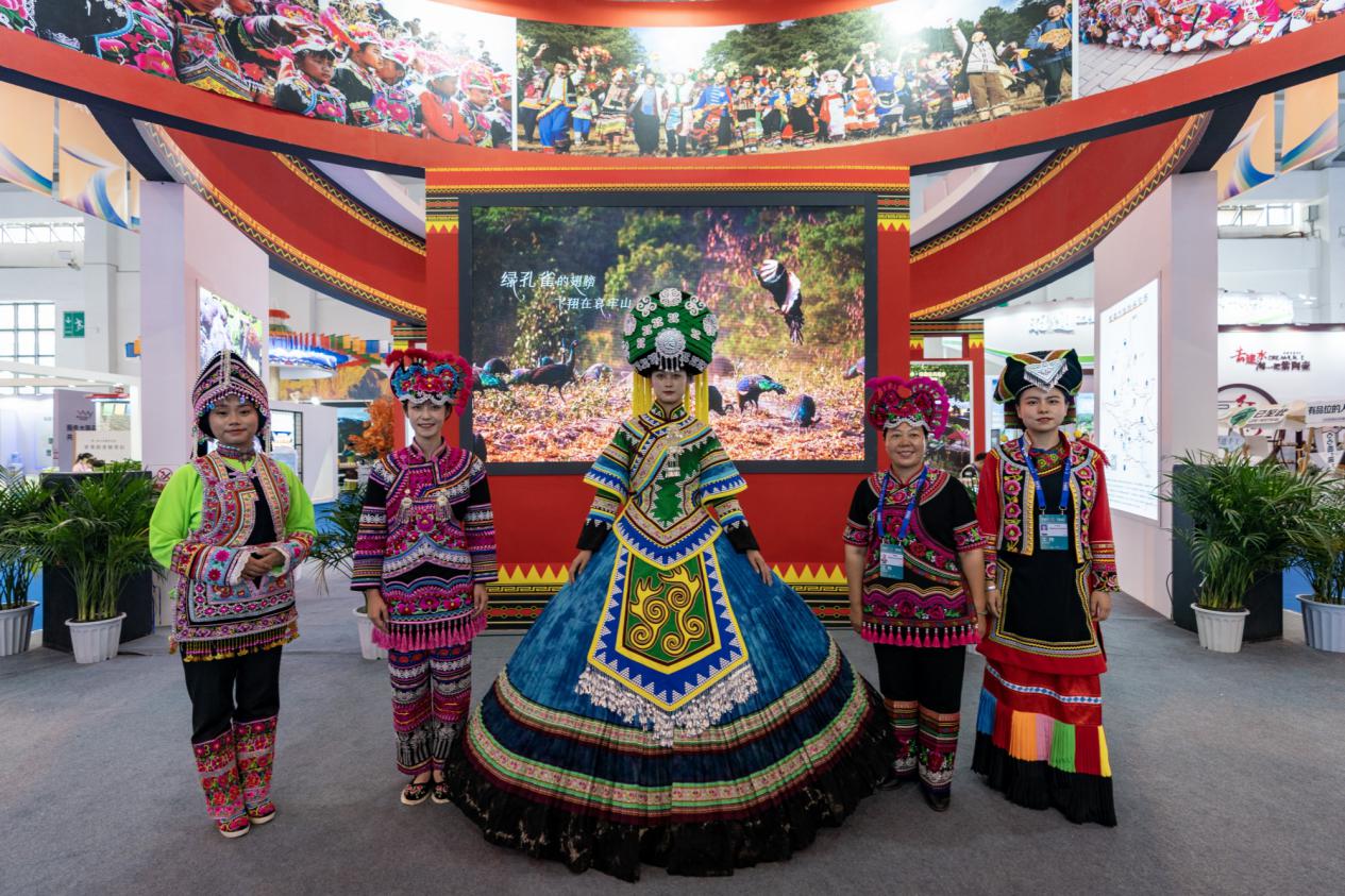 第七屆中國—南亞博覽會上拍攝的云南楚雄彝族刺繡服飾展示。新華社記者 陳欣波 攝
